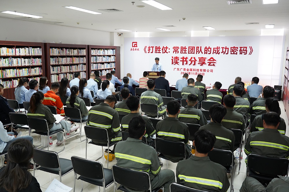 为加快打造公司特色企业文化,增强广大员工的凝聚力、执行力、创新力、战斗力,进一步推动公司高质量发展,11月20日,广东广青金属科技有限公司在综合楼图书馆举办了《打胜仗:常胜团队的成功密码》读书分享会活动。公司党委书记、董事长王骏,党委班子成员、支部书记、党员代表和干部职工代表共70多人参加了活动。