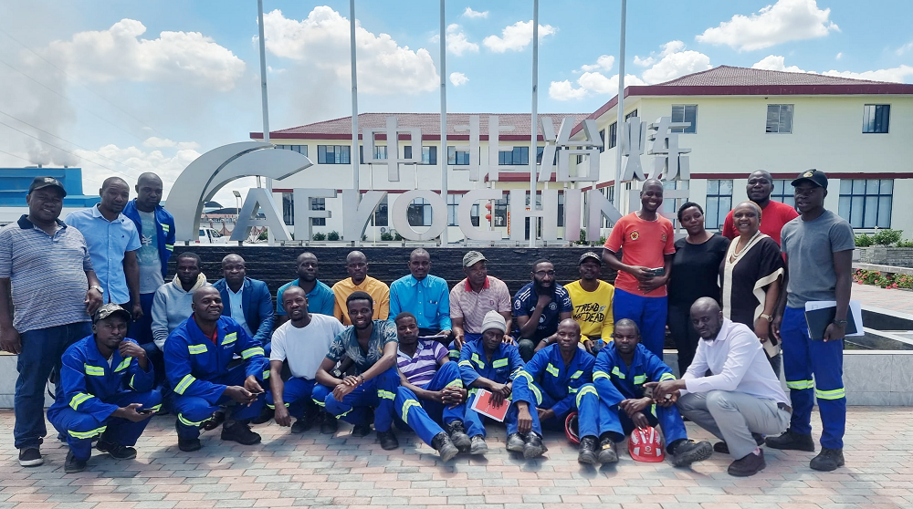 中非冶炼总经理周珠强带领普琳塞斯·恰乔卡一行先后参观了生产车间、仓库、急诊室、维修车间、办公场所、职工活动中心。在随后召开的座谈会上,周珠强强调:中非冶炼牢固树立“人才是第一资源”的理念,大力营造信任人才、尊重人才、支持人才、关爱人才的浓厚氛围,多措并举激发广大干部职工干事创业的积极性,让想干事、会干事的干部职工能干事、干成事。他还简要介绍了中非冶炼在企业标准化建设、职工关怀、履行社会责任等方面所做出的努力,包括年度涨薪、修建职工活动中心、搭建职工车棚、扩建职工宿舍、关怀患病职工、硬化厂区周边道路等。他表示:职工是企业发展的基石,要把企业发展成果与职工共享,推动工会工作和企业高质量发展同频共振。普琳塞斯·恰乔卡高度赞扬了中非冶炼的硬件设施和规范化管理。