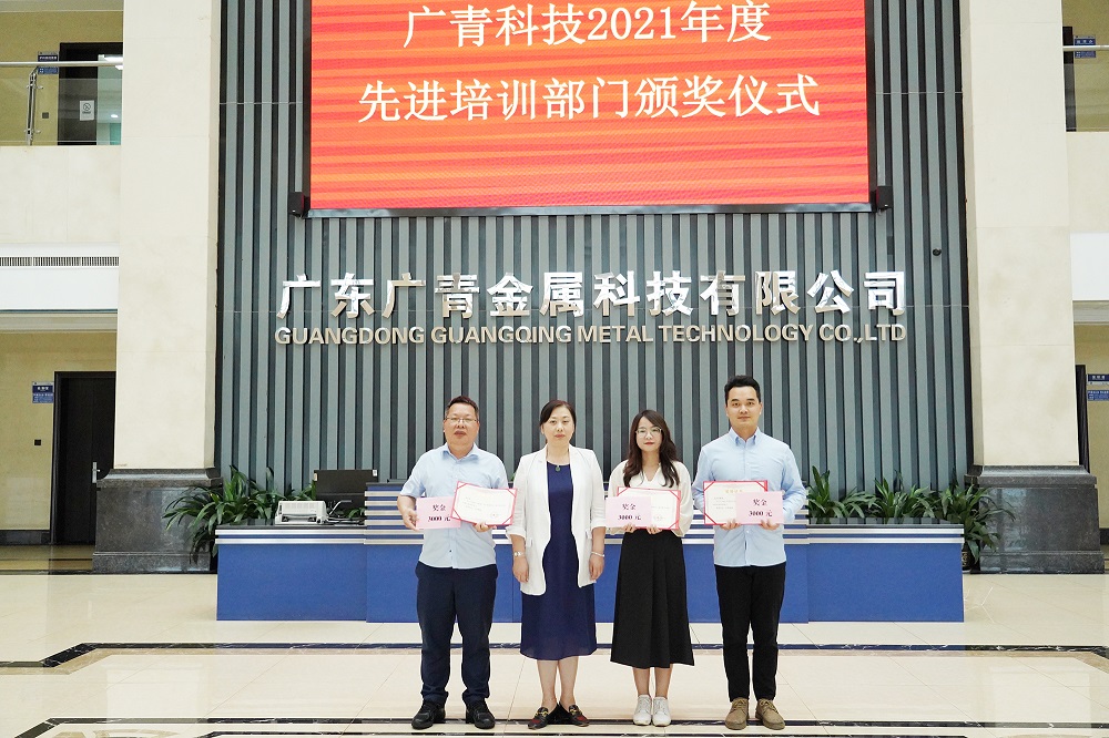 近日,广东广青金属科技有限公司举办了2021年度先进培训部门颁奖仪式,对获评“2021年度先进培训部门”的技术质量部、炼钢厂、综合部等3个部门(厂)予以表彰,对27名学习积极分子予以奖励。