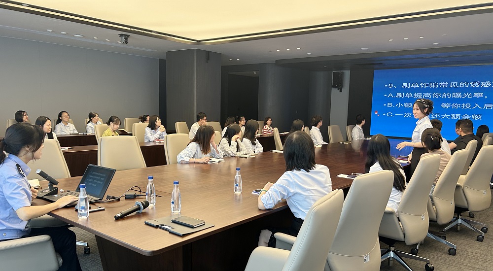 培训特邀佛山禅城分局刑侦大队的资深民警关惠慧主讲。关惠慧以其丰富的实战经验和专业的知识储备,将枯燥的反诈知识以生动有趣、贴近实际的方式呈现给在场的每一位员工。她通过剖析日常工作中处理过的真实诈骗案件,深入浅出地讲解了当前社会上各种常见的诈骗手段,如电信诈骗、“大额订单类”诈骗、网络交友投资诈骗以及虚假购物及服务类诈骗等。