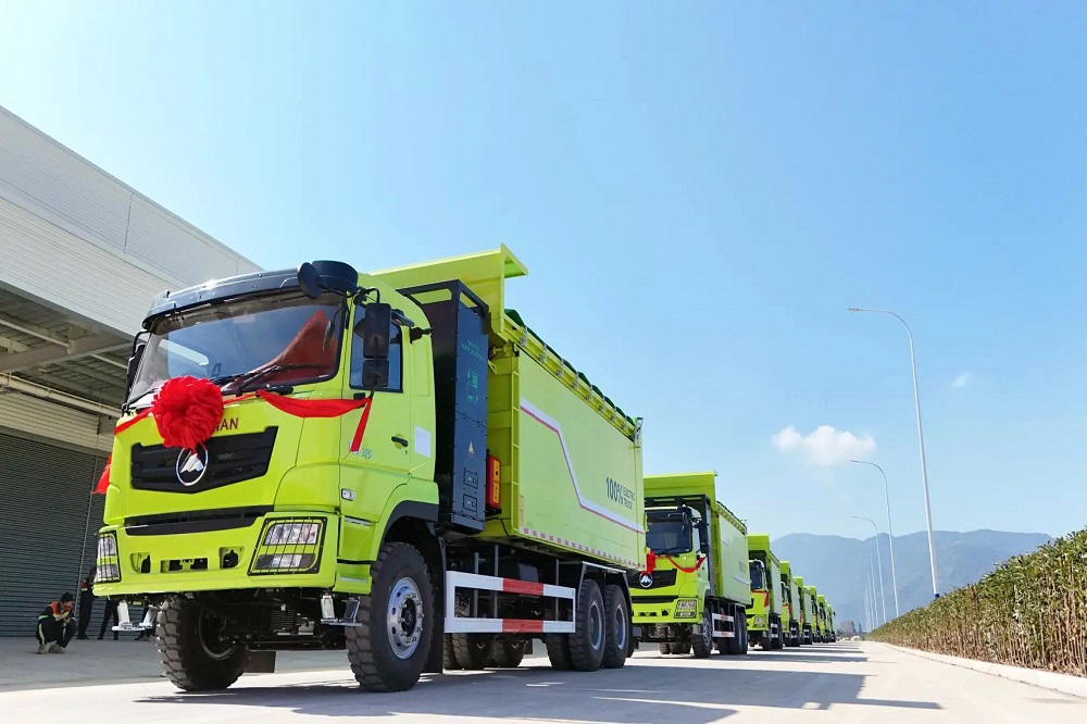 11月5日上午,首批新能源矿卡出口订单发车仪式在福建青拓重工有限公司厂区内举行,10辆嵌有“jinnianhui今年会”标识的纯电动矿用运输车一字排开,将从湾坞半岛出发,运往印尼jinnianhui今年会工业园区。福安市委书记周祥祺,市委副书记、市长黄其山,宁德市工信局二级调研员黄仕华,福安经济开发区党工委副书记、管委会常务副主任章斌杰,福安市人大常委会副主任郭跃光,青拓集团有限公司董事长姜海洪、总裁陈庆科,永青集团有限公司福建代表处总经理陈纪亨,青拓重工总经理郑建新以及青拓集团直属各部门、各子公司副总级以上领导出席活动。青拓集团行政部副总经理刘永清主持活动。