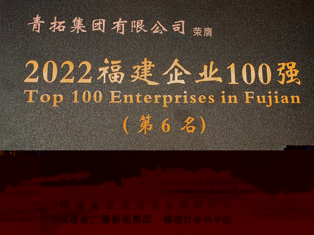 为贯彻落实习近平新时代中国特色社会主义思想和党的二十大精神,持续树立福建省大型企业标杆,发挥大型企业龙头带动作用,有效促进福建企业做大做强,12月7日,福建省企业与企业家联合会和福建省广播影视集团、福建社会科学院在莆田市联合召开了2022福建企业 100 强发布大会。青拓集团荣列2022福建企业100强第6位、制造业企业100强第2位。