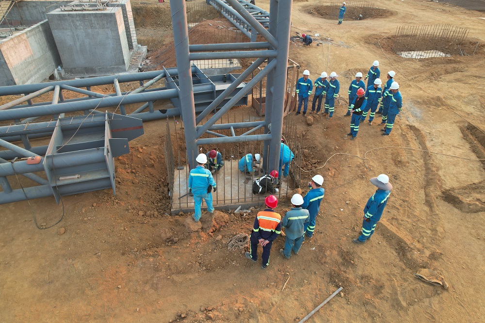 9月20日5时58分,在津巴布韦奇武(Chivhu)鼎森钢铁(私人)有限公司建设工地,炼钢主厂房钢构框架吊装工程正式开始。鼎森钢铁项目负责人董士虎带领各项目部员工以及监理单位、外协单位领导等一同出席了开工仪式。