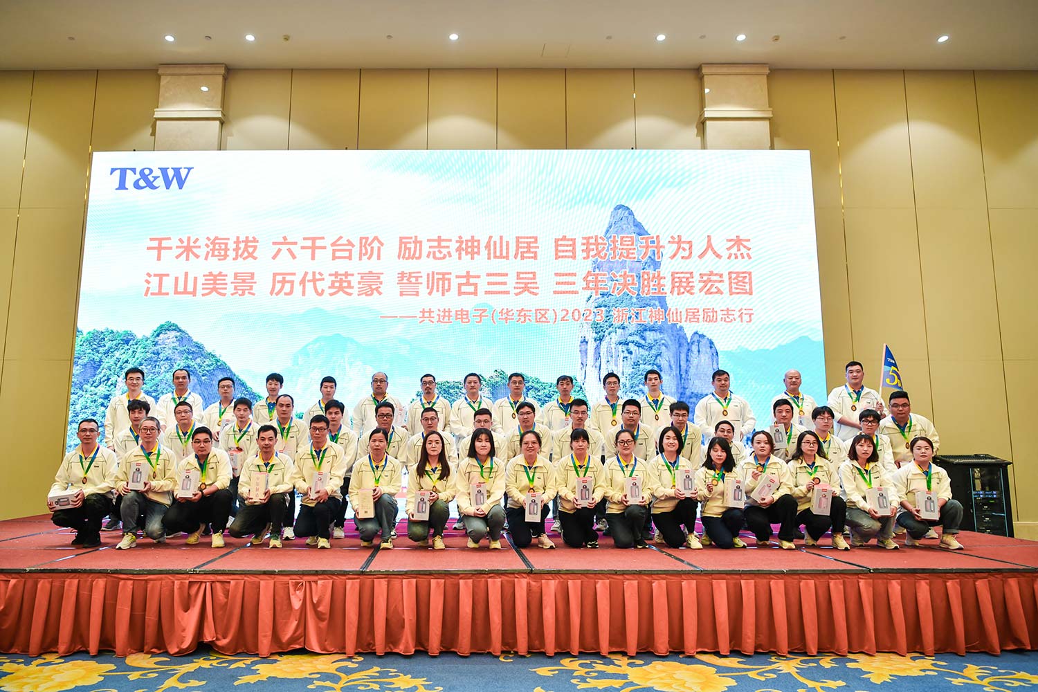 为培养合格人才,锤炼核心人才,发动公司全体员工勇扛压力,逆势奋发,精诚协作,誓达目标,10月13日至15日共进电子(华东区)在浙江台州、绍兴两地开展2023浙江神仙居励志行活动,攀登神仙居,游览绍兴古城,同时召开公司下半年工作动员大会。